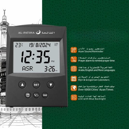 L’Azan Clock n’est pas seulement un outil pratique : c’est aussi un rappel visuel et sonore constant de l’importance de la prière dans votre foyer.